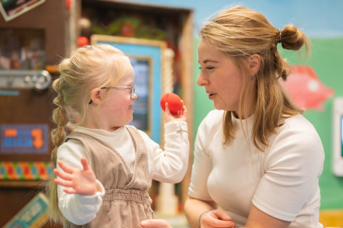Rond haar eerste verjaardag kregen we de oproep voor het Downcentrum van Alrijne. We waren ondertussen al met wat specialisten in contact, zo kreeg ze bijvoorbeeld al fysiotherapie. Het Downcentrum biedt op een kleinschalige manier zorg aan kinderen met het downsyndroom. We zaten met kindjes van haar leeftijd. Dat was erg fijn omdat je zo met andere ouders in contact komt die in dezelfde leeftijd zitten. Ook is het fijn om kindjes te zien die hetzelfde zijn als jou kindje.