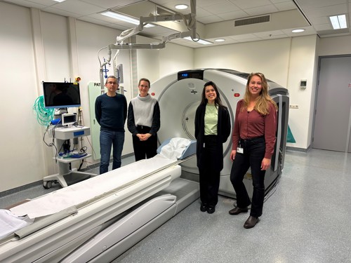 PET-CT is een onderzoek waarmee we met een radioactieve stof kunnen kijken hoe bepaalde weefsels of organen functioneren, bijvoorbeeld bij kanker, hart-, vaat- en neurologische problemen. Bij kanker hecht de radioactieve stof zich bijvoorbeeld aan de sneldelende cellen. Die opstapeling zie je dan op het beeldscherm als een zwarte vlek. Zo kun je een tumor en/of uitzaaiingen opsporen. Een heel waardevol onderzoek dus! Juist omdat we zien dat de PET-CT scanner steeds vaker wordt ingezet, waren begeleiders vanuit Alrijne Alina van der Burgt (technisch geneeskundige), Frits Smit (nucleair geneeskundige) en Nicole Bakker (klinisch fysicus) benieuwd hoe we deze onderzoeksmethode ‘zo groen mogelijk’ kunnen inzetten.
