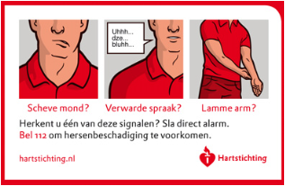 Toch willen de betrokken zorginstellingen ook nu aandacht vragen voor de beroerte, en wel door onderstaand kaartje breed te verspreiden.