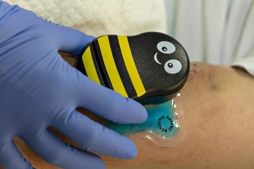 Op deze manier kunnen wij het aanprikken een beetje aangenamer maken voor onze patiënten.