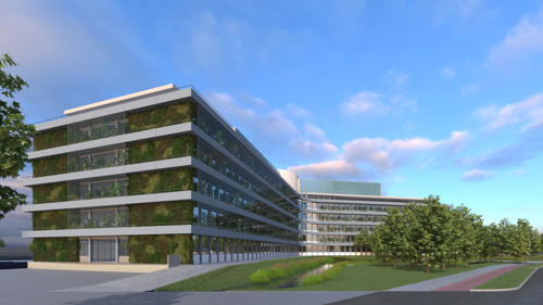 Impressie van de groene gevel bij Alrijne Ziekenhuis Leiderdorp.